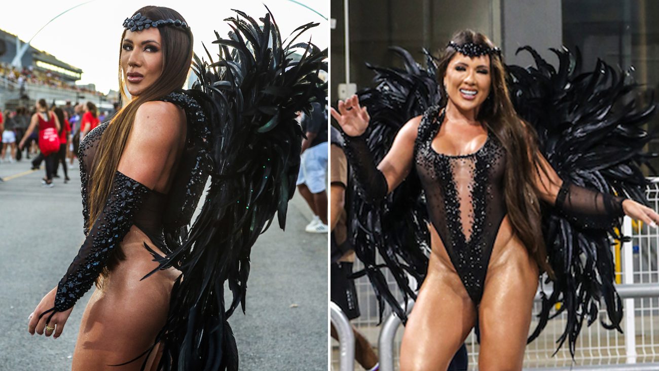 O visual trouxe uma proposta ousada e simbólica, combinando transparências, penas e recortes estratégicos. Segundo Carla, a ideia representa força, proteção e dualidade — elementos que dialogam tanto com a narrativa da escola quanto com sua própria trajetória. “É um anjo intenso, provocador, que não é frágil. Tem tudo a ver com esse Carnaval que fala de mulheres donas de si”, afirmou.