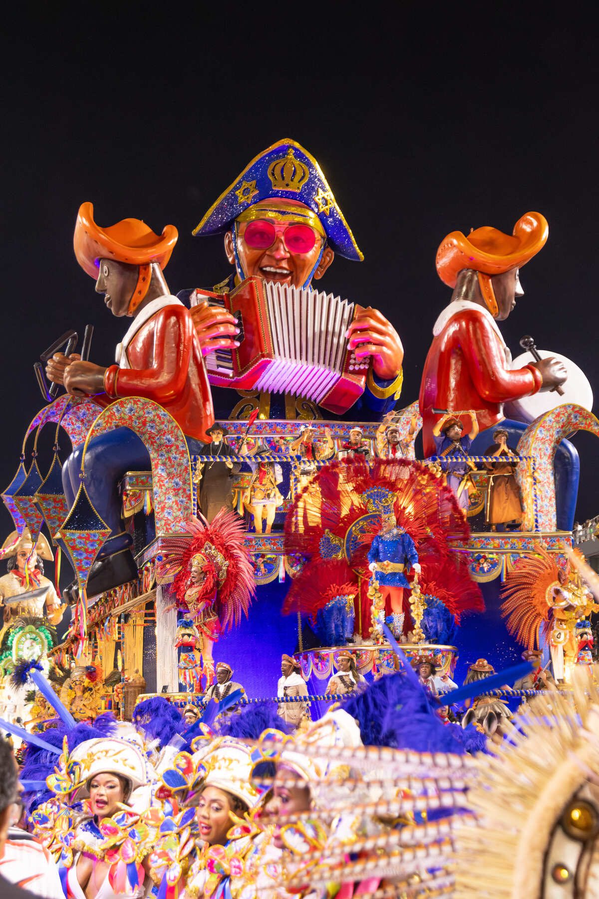 A comissão de frente abriu o espetáculo com coreografia teatral e efeitos visuais que ajudaram a introduzir o tema. Já os carros alegóricos trouxeram cenários elaborados e esculturas imponentes, criando imagens de grande impacto ao longo da avenida.