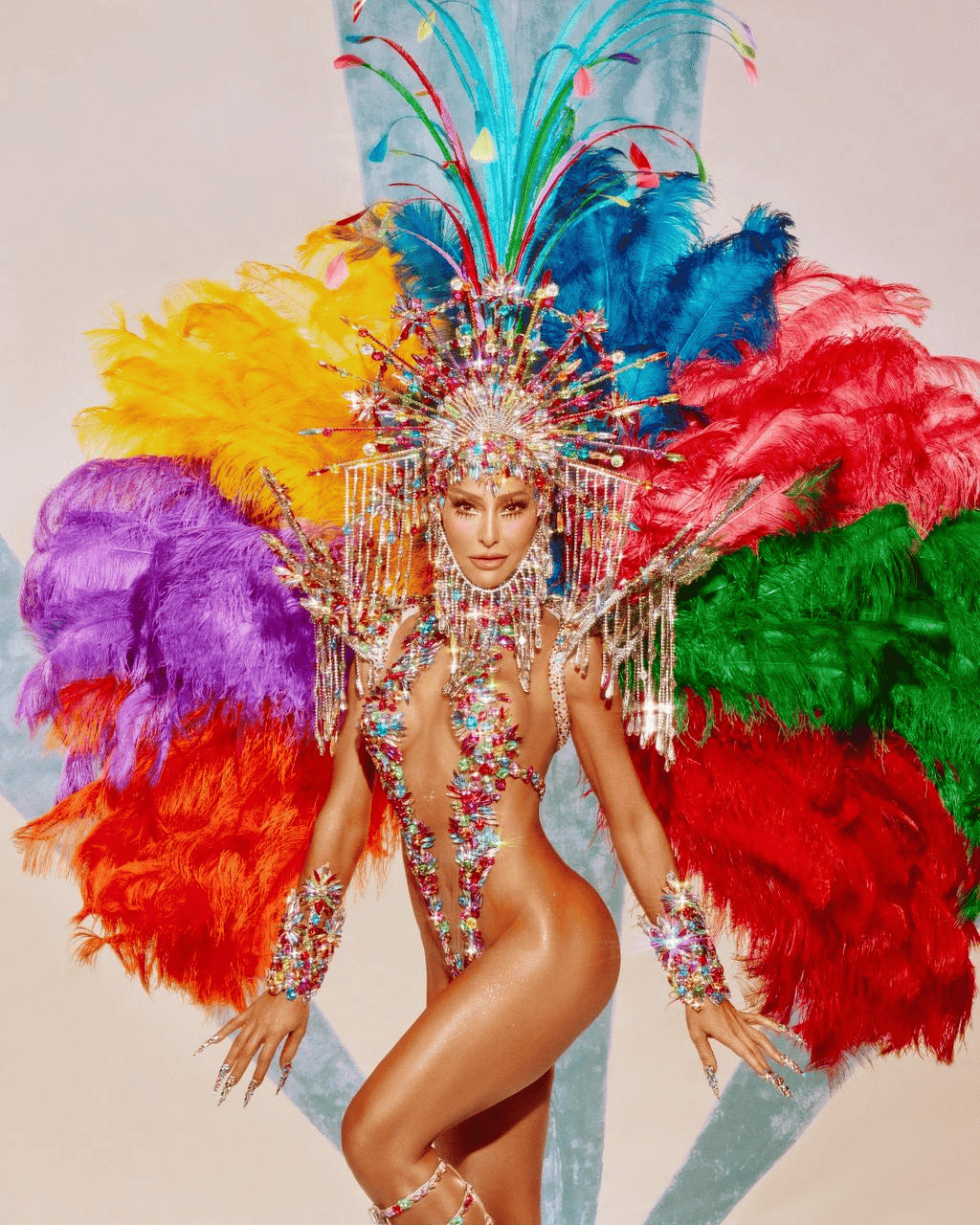 O figurino chamou atenção pela mistura intensa de tons vibrantes, pedrarias e elementos que remetiam às pinturas do artista, conhecidas por retratar o cotidiano do povo com alegria e movimento. O visual trouxe a sensação de que a arte ganhava vida enquanto a bateria avançava pela avenida, acompanhando o ritmo contagiante do desfile.